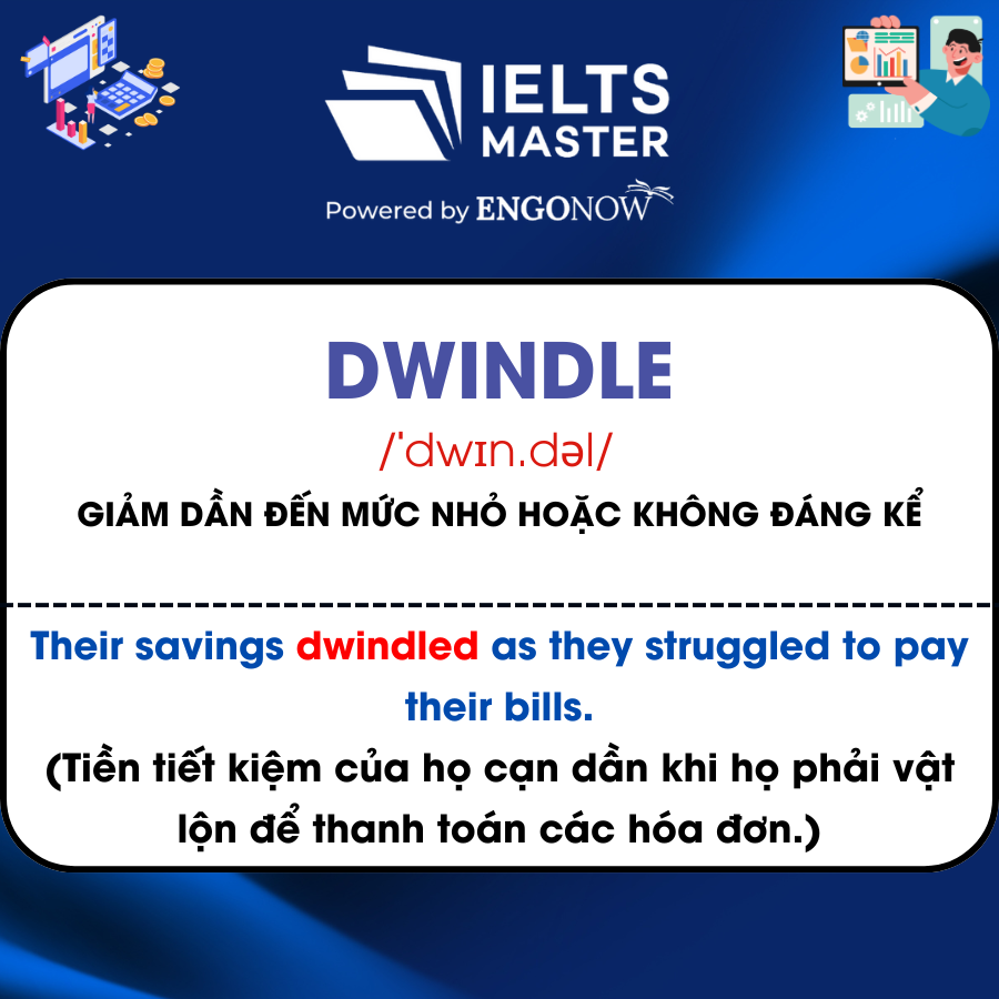 - Dwindle /ˈdwɪn.dəl/: Giảm dần đến mức nhỏ hoặc không đáng kể