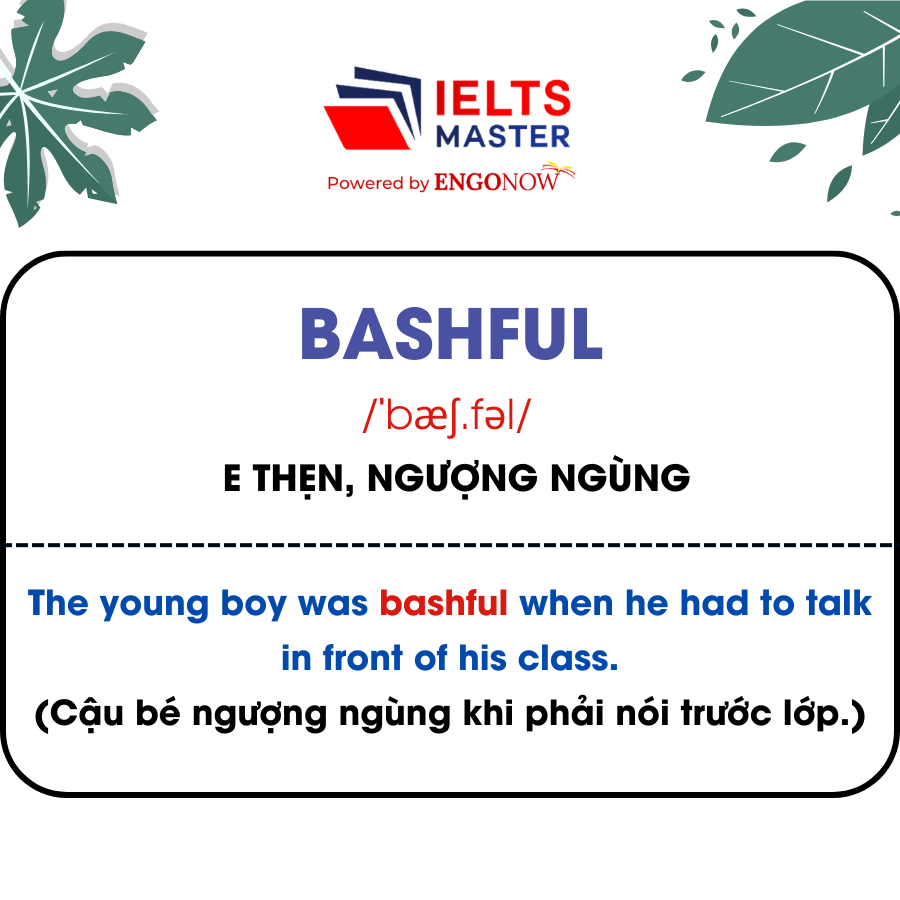 - Bashful /ˈbæʃ.fəl/: E thẹn, ngượng ngùng