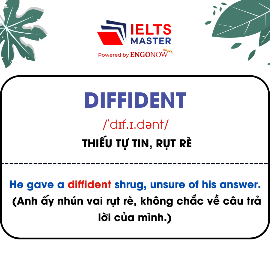 - Diffident /ˈdɪf.ɪ.dənt/: Thiếu tự tin, rụt rè