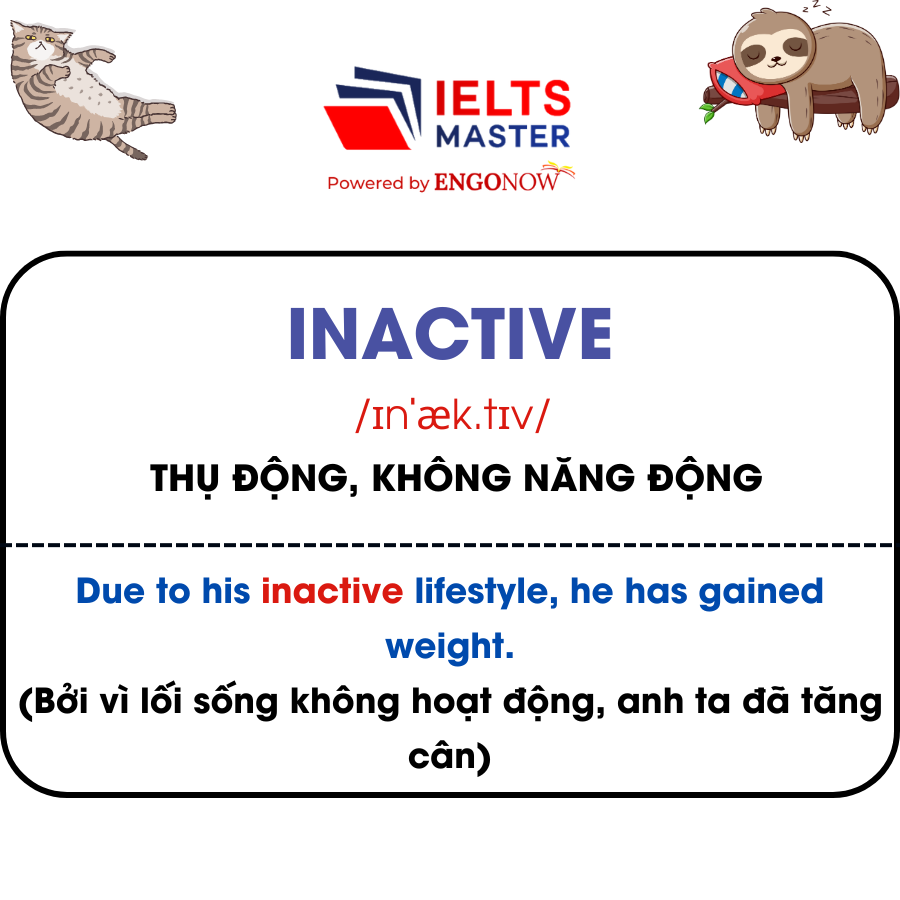 - Inactive /ɪnˈæk.tɪv/: Thụ động, không năng động