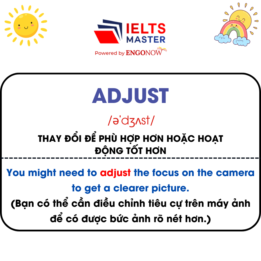 - Adjust /əˈdʒʌst/: Thay đổi để phù hợp hơn hoặc hoạt động tốt hơn