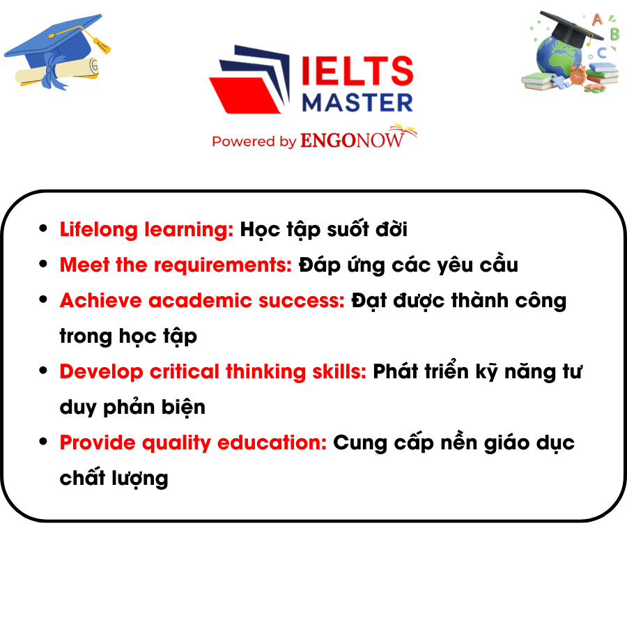 Chào các bạn, mình là Khang đến từ Trung tâm Ngoại ngữ IELTS MASTER HCM – ENGONOW. Hôm nay mình rất vui khi có thể chia sẻ đến các bạn những Collocations “Education”. Chúc các bạn học tốt nhé!