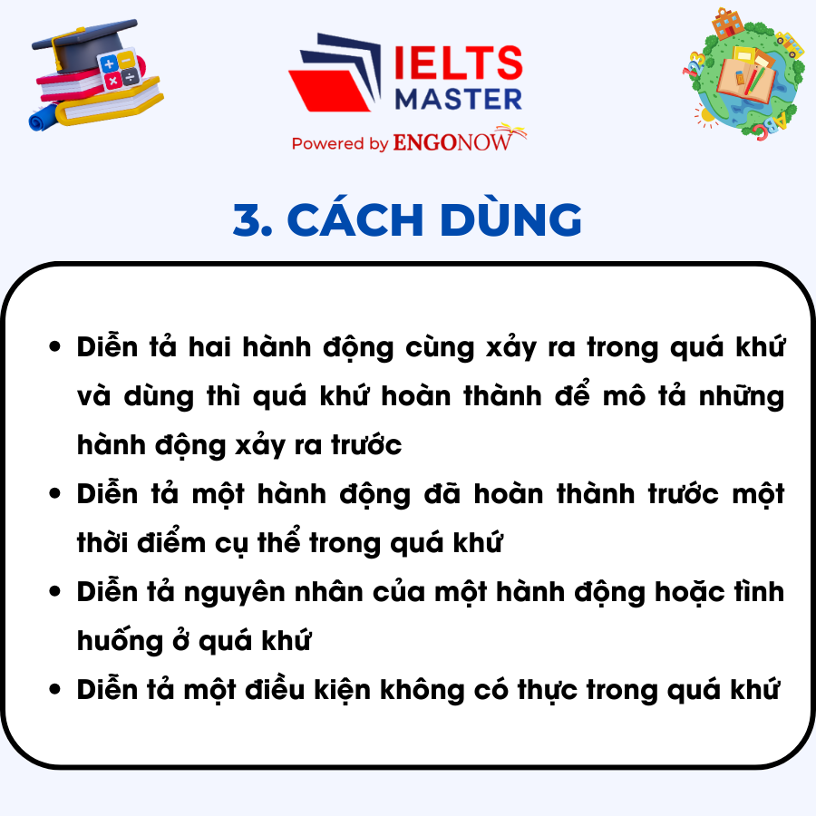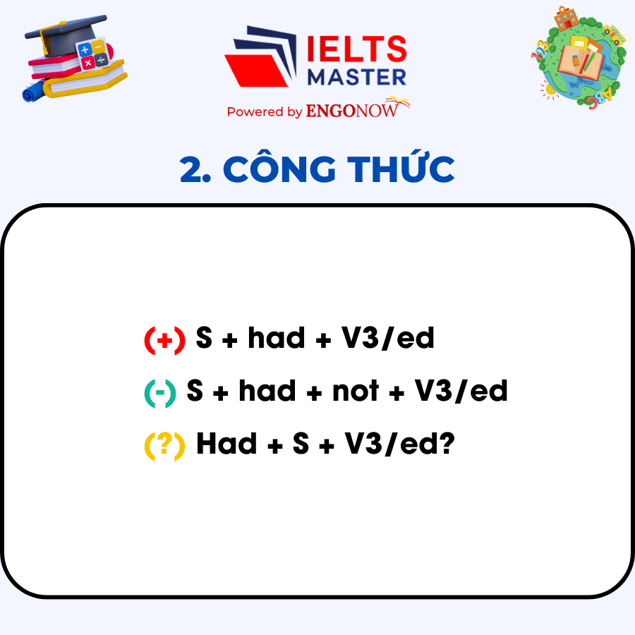 Chào các bạn, mình là Khang đến từ Trung tâm Ngoại ngữ IELTS MASTER HCM – ENGONOW.  Hôm nay mình rất vui khi có thể chia sẻ đến các bạn cấu trúc Past Perfect Chúc các bạn học tốt nhé!