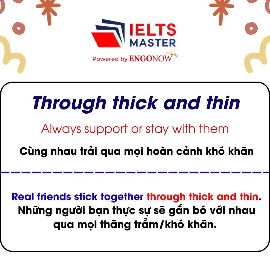 - Through thick and thin: Cùng nhau trải qua mọi hoàn cảnh khó khăn