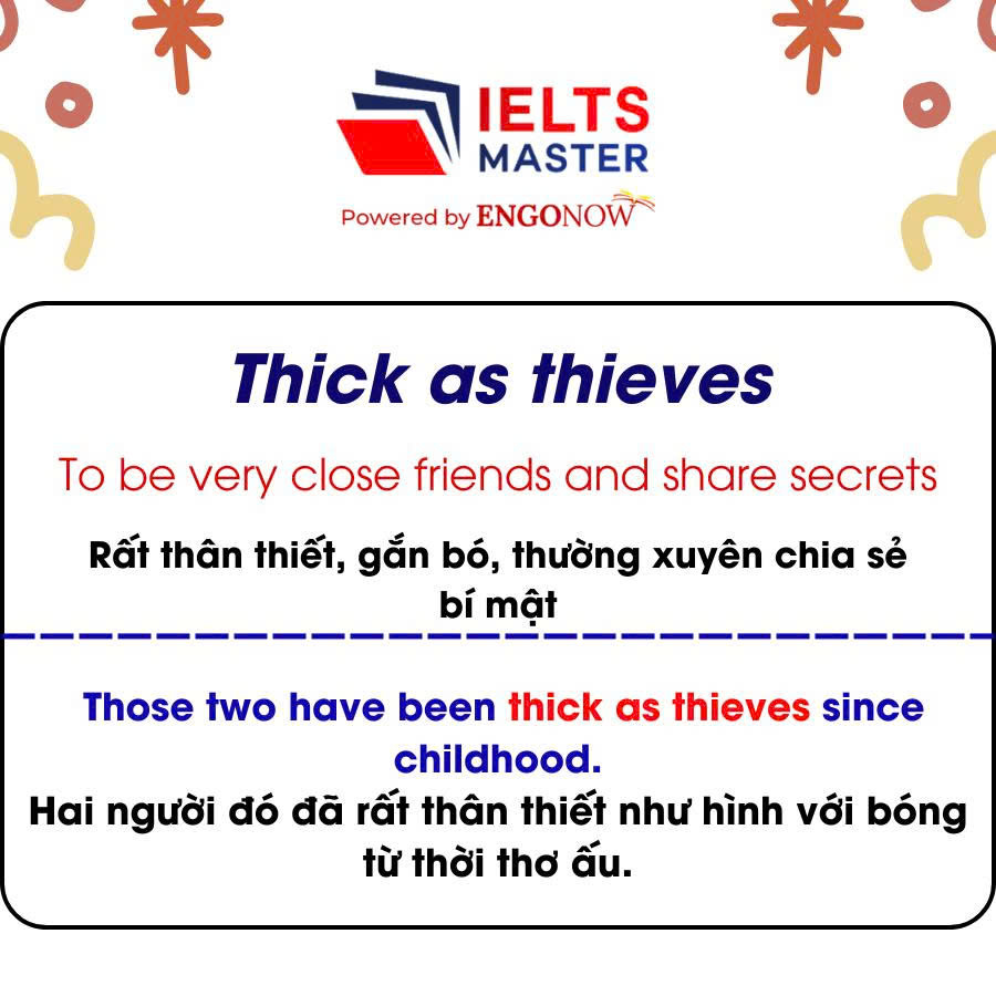 - Thick as thieves: Rất thân thiết, gắn bó, thường xuyên chia sẻ bí mật
