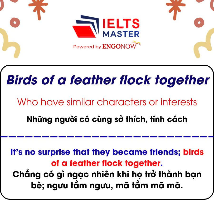 - Birds of a feather flock together: Những người có cùng sở thích, tính cách