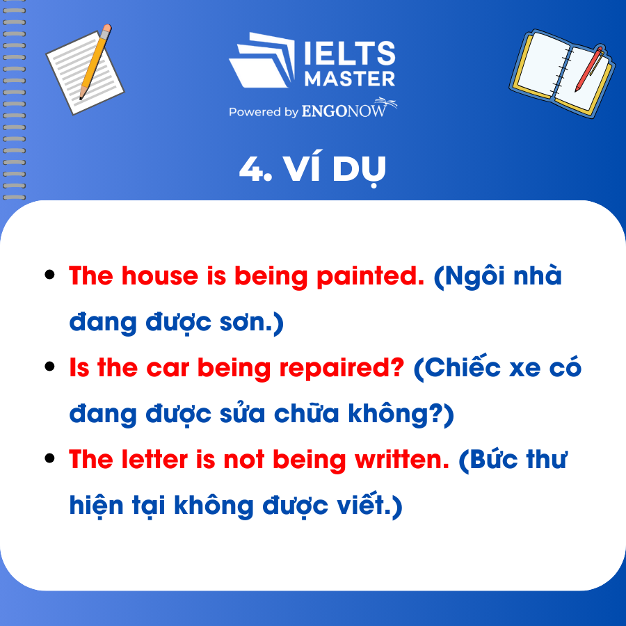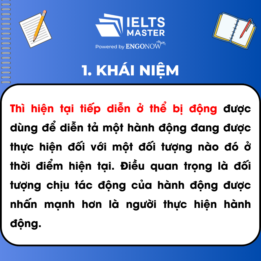 Chào các bạn, mình là Khang đến từ Trung tâm Ngoại ngữ IELTS MASTER HCM – ENGONOW. Hôm nay mình rất vui khi có thể chia sẻ đến các bạn Cấu trúc thì hiện tại tiếp diễn thể bị động. Chúc các bạn học tốt nhé!