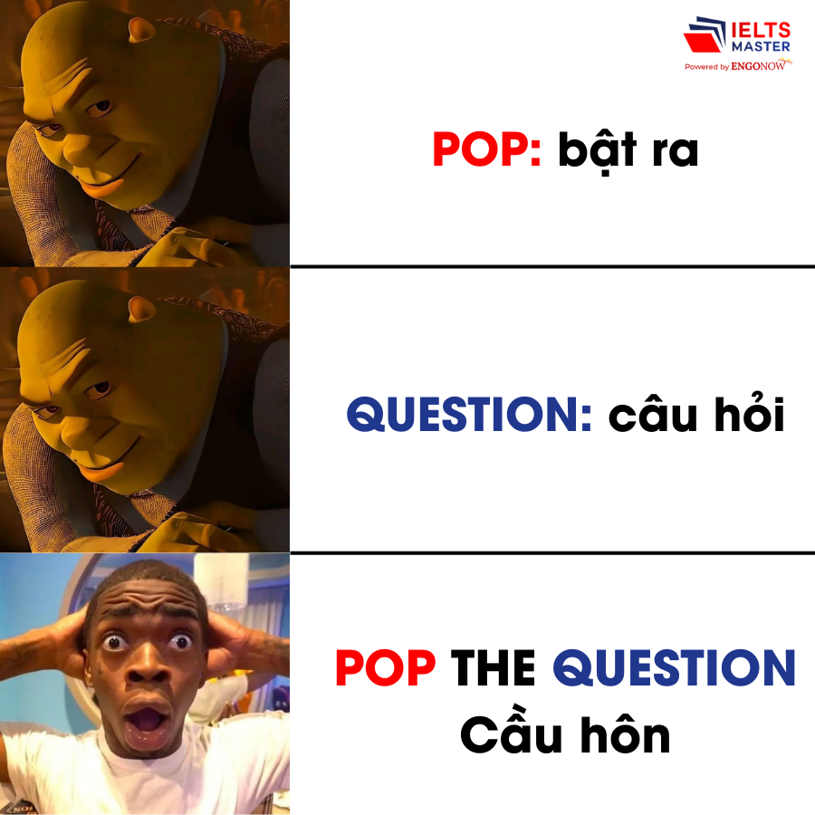Chào các bạn, mình là Khang đến từ Trung tâm Ngoại ngữ IELTS MASTER HCM – ENGONOW. Hôm nay mình rất vui khi có thể chia sẻ đến các bạn cụm từ: “Pop the question”. Chúc các bạn học tốt nhé!